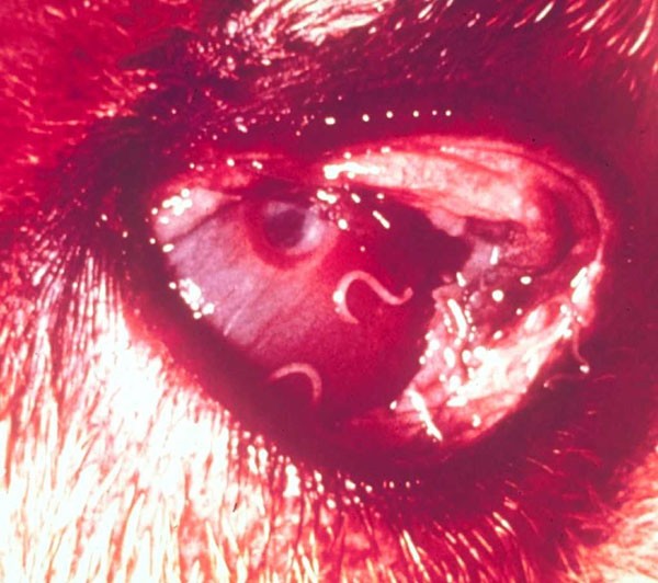 Bệnh gây ra có tên là spirurosis ở kết mạc, hoặc giun ký sinh ở mắt phương đông;