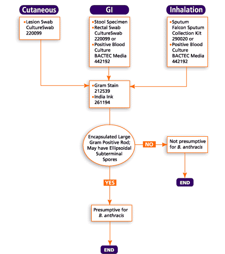 Lấy mẫu bệnh phẩm: đối với thể da thì lấy dịch bọng nước trong giai đoạn bọng nước, lấy dịch dưới vảy trong giai đoạn đóng vảy; thể phổi - hít lấy bệnh phẩm là đờm và máu; Thể tiêu hóa lấy bệnh phẩm là phân và máu;