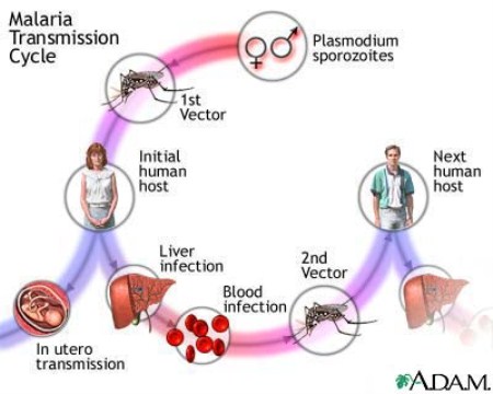 Bệnh sốt rét ở người bắt đầu bằng một vết đốt của con muôi mang ký sinh trùng sốt rét, gây bệnh cho các cơ quan trong cơ thể. |