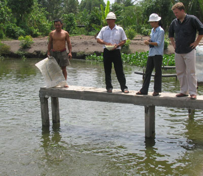 | Cán bộ Dự án điều tra thực tế về tình hình nuôi trồng thủy sản ở tỉnh Nam Định |