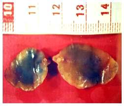 5 ca (62.5%) cấp tính được chẩn đoán huyết thanh học ELISA và WB. Trong số 5 ca này thì có đến 2 ca có tổn thương ở gan phải cũng như đã xét nghiệm huyết thanh học và siêu âm. 3 ca còn lại là giai đoạn cấp được phẩu thuậtsau khi chẩn đoán ban đầu có khối u trong gan và 2 ca đuowjc cắt bỏ khối u khỏi gan, 1 ca được cắt bán phần gan. Với nghi ngờ tổn thương F.hepatica qua phân tích mô bệnh học 3 bệnh nhân này được xét nghiệm huyết thanh học và kết quả cũng dương tính. Chẩn đoán cuối cùng được xác định và liều thuốc đặc hiệu triclabendazol 10 mg/kg được chỉ định.Một trong số ca mạn tính nhậo viện do tắc mật vàng da và xét nghiệm có viêm tụy cấp nhưng phải phẩu thuật vì thiếu chẩn đoán xác định cuối cùng. Trong suốt quá trình phẩu thuật, sán được lấy ra khỏi ống mật chủ (xem hình dưới đây).
