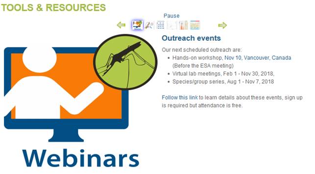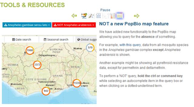 Một số giao diện trên trang website liên quan đến công cụ này bạn có thể tra cứu dưới đây và khi tra cứu tài liệu này, có thể nhấp chuột vào các vùng để xem các loài Anopheles spp., các véc tơ chính truyền bệnh sốt rét và các véc tơ phụ. Trong đó, các loài véc tơ truyền bệnh có sự phân bố như sau: