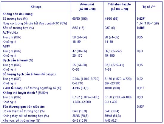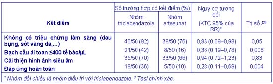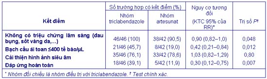 § Hai trường hợp khuyết số liệu ở nhóm triclabendazole và 4 trường hợp ở nhóm artesunat.