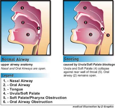 Việc amiđan (một trong hai bộ phận nhỏ ở hai bên họng, gần cuống lưỡi) to lên và bổ sung thêm những hạch hạnh nhân ở họng. Khi mà cơ ở vòm họng không phải hoạt động nhiều trong quá trình ngủ, các amiđan và những hạch hạnh nhân là nguyên nhân làm hẹp (cản trở, gây tắc) luồng không khí trong cổ họng. Sự hỗn loạn bên trong của luồng không khí gây nên vấn đề này, đó cũng là lý do tại sao trẻ phát ra âm thanh ngáy khi trẻ ngủ.