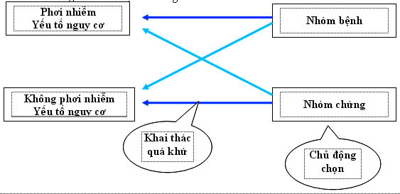 Điểm xuất phát của nghiên cứu bệnh chứng là bệnh. Đây cũng là đặc trưng nổi bật của loại nghiên cứu này. Xuất phát từ hiện tượng có hay không có bệnh đang được quan tâm, người ta hồi cứu về việc phơi nhiễm với yếu tố bị nghi ngờ là nguyên nhân của bệnh đó. Loại nghiên cứu này được sử dụng nhiều để kỉêm định giả thuyết vì tương đối dễ thực hiện, không đòi hỏi thời gian theo dõi dài nhưng khi thiết kế phải thận trọng để tránh sai lầm do không xác định được nhóm bệnh hoặc nhóm chứng và chú ý hạn chế sai số nhớ lại.. Sơ đồ thiết kế nghiên cứu bệnh chứng: