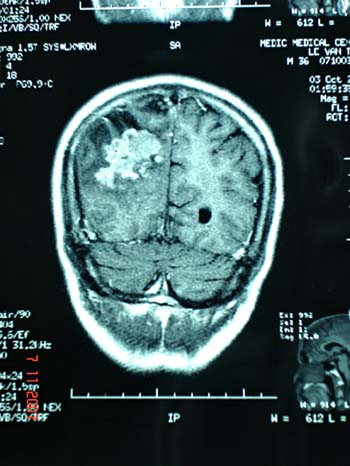 Hình 1: Thương tổn apxe não do nấm dưới hình ảnh MRI |