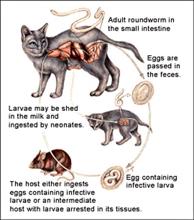 Toxocara canis và Toxocara cati là các loại giun tròn thường liên quan đến chó và mèo là vật chủ chính, chúng phân bố trên khắp thế giới, tại bắc Mỹ, tỷ lệ nhiễm Toxocara spp. khoảng 20% trên các chó trưởng thành và 80% trên các chó con và 28-42% trên các mèo nói chung.