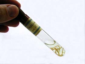 Một thử nghiệm u hạt tăng bạch cầu ái toan trên nhu mô sinh thiết cho thấy rõ bệnh lý VLM, và là tác nhân gây bệnh nên được nghĩ đến. Tuy nhiên, các mẫu chứa ấu trùng nguyên vẹn của giun đũa chó, mèo hiếm khi tìm thấy và không nhất thiết phải có nó mới chẩn đoán thiết lập. Xét nghiệm ELISA phát hiện các kháng thể chống lại kháng nguyên tiết ấu trùng giai đoạn 2 của giun đũa chó mèo nên tiến hành (second-stage larval excretory-secretory antigen) và đây là một trong những phương pháp gián tiếp tốt nhất cho chẩn đoán (độ nhạy 78 - 91%, độ đặc hiệu 86 - 93%). Tuy nhiên, các xét nghiệm miễn dịch chỉ ra mức độ dương tính chéo với cả T. canis và T. cati. Xét nghiệm phân tìm trứng của giun nói chung không giúp ích gì vì ấu trùng non giai đoạn nhiễm không thể nhân lên trong vật chủ. Do đó, điều tra bệnh sử, lâm sàng và xét nghiệm máu, bạch cầu eosin tăng và tăng gamaglobuline máu và huyết thanh dương tính kèm theo hình ảnh u hạt tăng eosin được phát hiện từ mẫu sinh thiết mô xác định chẩn đoán giun đũa chó, mèo.