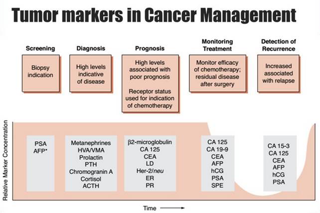 Một trong những thành tưu đó chính là xét nghiệm các chỉ điểm khối u hay gọi là chỉ điểm sinh học khối u (tumor markers) tùy thuộc vào từng cơ quan đích sẽ có các chỉ điểm đặc hiệu riêng. tuy nhiên sự đặc hiệu đó không phải lúc nào cũng tuyệt đối và còn có một tỷ lệ sai sót hay nói đúng hơn là chỉ số này còn bị nhiễu bởi một số tình trạng bệnh lý khác nhau đã từng gặp trên lâm sàng. Nhiều nghiên cứu gần đây đã chứng minh điều đó qua các nghiên cứu cập nhật hàng năm thông qua các hội thảo chuyên đề ung thư.