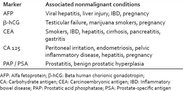 Tumor markers in clinical practice: General principles and guidelines.Sharma S.Indian J Med Paediatr oncol. 2009 Jan;30(1):1-8. doi: 10.4103/0971-5851.56328.PMID: 20668599 Free PMC Article Similar articles Select item 17164302.