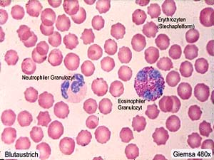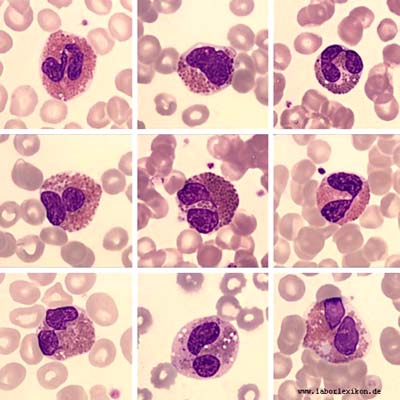 ­ !important;Hình thái học trên lam máu nhuộm là hình ảnh bạch cầu bắt thuốc nhuộm eosin sáng.