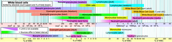 Số lượng chung BC giới hạn từ 5.000-9.000/mm3. Trong trường hợp bệnh lý, BC có thể thay đổi theo hai hướng: (i) BC tăng khi số lượng tăng trên 9000/mm3, là phản ứng tích cực của cơ thể đối với nhân tố gây bệnh, chủ yếu là nhân tố nhiễm khẩn. BC tăng cao trên 25.000/mm3 thường thấy xuất hiện các BC non nên được gọi là phản ứng dạng bệnh BCm gặp trong các trường hợp nhiễm khuẩn nặng.