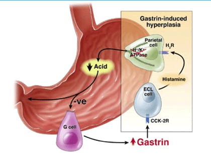 Loét dạ dày tá tràng có nguyên nhân và cơ chế bệnh sinh khá phức tạp, có sự tham gia của nhiều yếu tố, trong đó ảnh hưởng của dịch vị dạ dày mà trực tiếp là acid HCl ở dạ dày đóng vai trò quan trọng. Sự bài tiết HCl ở dạ dày là do tế bào viền đảm nhận, cơ chế tiết khá phức tạp và ở công đoạn cuối cùng phải có sự tham gia của enzym H+K+ ATPase (còn gọi là bơm proton) nằm ở màng tế bào viền để vận chuyển HCl đã được bài tiết ở trong lòng tế bào viền ra bên ngoài đổ vào lòng dạ dày tạo nên dịch vị. Do đó trong các trường hợp loét dạ dày có sự tăng tiết dịch vị thì người ta thường sử dụng các thuốc ức chế bơm proton này. Các thuốc có tác dụng bất hoạt enzym bằng cách gắn với enzym tạo nên phức hợp không còn hoạt tính vận chuyển ion H+ và được gọi là thuốc ức chế bơm proton.