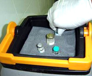 | Vận chuyển vaccin trong hòm lạnh có nước đá bảo quản (ảnh internet minh họa) |