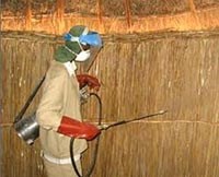 Tường vách các ngôi nhà của người dân vùng nông thôn, miền núi được xây dựng bằng chất liệu đất hoặc bùn trộn rơm rạ sẽ làm cho hóa chất hấp thụ nhiều hơn ở bề mặt nơi muỗi đậu. Nếu tường vách đất được quét vôi hay loại sơn có chứa hóa chất làm tăng độ pH sẽ làm cho một số hóa chất diệt côn trùng phun trên tường vách bị phân hủy nhanh. Mái nhà được lợp bằng tranh hoặc lá cành cây có nhiều khe hở là nơi muỗi truyền bệnh có thể trú đậu nghỉ nhưng khi phun hóa chất diệt thì hóa chất không thể chui lọt vào các khe hở đó, vì vậy sẽ không có tác dụng diệt muỗi. Thực tiễn cho thấy bề mặt tường vách tốt nhất để thực hiện việc phun tồn lưu hóa chất diệt muỗi là loại bề mặt không thấm, được xây dựng bằng chất liệu gỗ cứng hoặc được quét sơn có độ pH thích hợp để không làm phân hủy hóa chất.