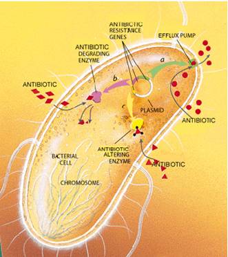 -Các plasmid của vi khuẩn thường mang trên nó các gen cho phép chúng gắn vào bề mặt niêm mạc, tạo ra độc tố và xâm nhập, các plasmid kháng thuốc có thể truyền cho nhau giữa các vi khuẩn làm lan nhanh sự đề kháng thuốc.