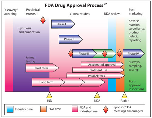 FDA duyệt xét thấu đáo các loại thuốc, chế phẩm sinh học, và dụng cụ y khoa để tìm hiểu về sự an toàn và hiệu quả của chúng trước khi chấp thuận đưa ra thị trường. Trước khi một sản phẩm được đưa ra thị trường, nhà tài trợ phải nộp đơn xin chấp thuận lên FDA. Đơn xin này có "tờ hướng dẫn sử dụng" mà còn có thể được gọi là "thông tin thuốc". Tờ thông tin này tóm lược những điều mà FDA xác định là việc sử dụng an toàn và hữu hiệu sản phẩm. Để đưa ra quyết định chấp thuận của mình, FDA dựa vào dữ liệu nghiên cứu sinh học đã được nhà tài trợ lập ra và báo cáo lên FDA làm căn cứ để được chấp thuận việc tiếp thị sản phẩm. Các dữ liệu này được nhà tài trợ thu thập trong quá trình nghiên cứu lâm sàng được tiến hành theo Đơn xin sử dụng thuốc thử nghiệm mới (IND) hoặc Đơn xin miễn trừ dụng cụ thử nghiệm (IDE).
