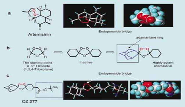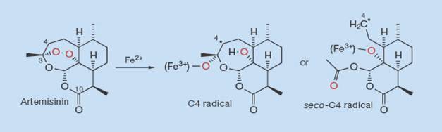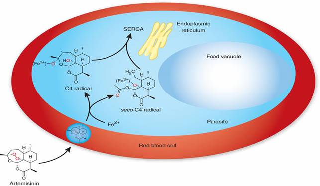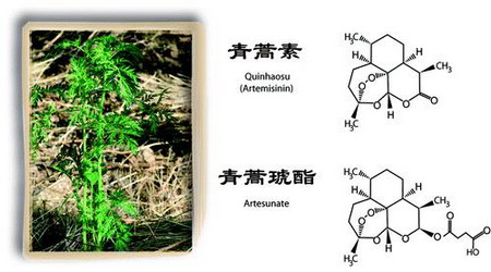 Artemisinin là một sản phẩm thiên nhiên là dẫn xuất từ cây thuốc Trung Quốc, Artemisia annua (Hình 1). Trong thời chiến tranh Việt nam, ở Trung Quốc đã triển khai một chương trình tìm kiếm thuốc kháng sốt rét mới. Như một hệ quả, Tu Youyou, một nhà khoa học Trung Quốc ở Viện Hàn Lâm y học cổ truyền Trung Quốc phát hiện artemisinin như một hợp chất tác dụng của A. annua vào năm 1972. Sự vượt qua hoạt tính kháng sốt rét của nó được biểu thị trong nhiều nghiên cứu lâm sàng của các nhà khoa học Trung Quốc và phương tây. Mặc dù thành công và tiềm năng thực sự của Artemisinin đã bị giới khoa học phương tây đánh giá thấp trong nhiều năm.. Trong khi đó, WHO chính thức khuyến cáo dùng Artemisinin và các dẫn xuất như artesunate và Artemether để điều trị sốt rét.