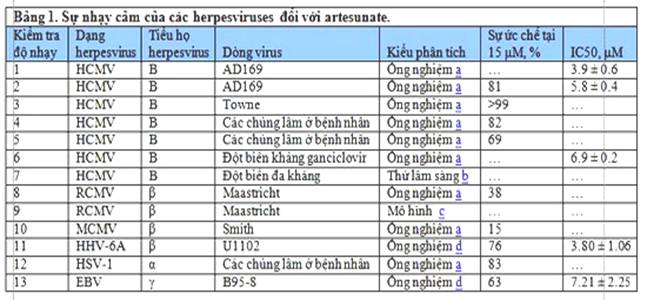 Hoạt tính phổ rộng Artesunate chống lại các virus Herpes