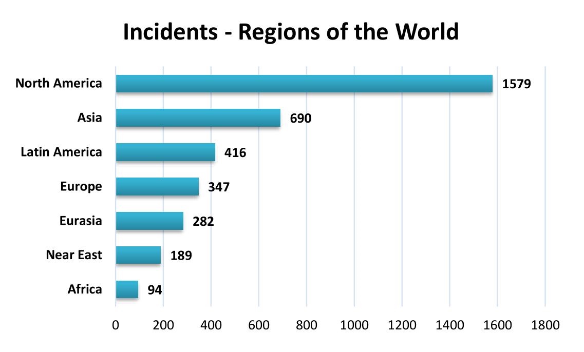 • Các vụ ở khu vực Bắc Mỹ đã tăng hơn 100% vượt qua 1.000 vụ;