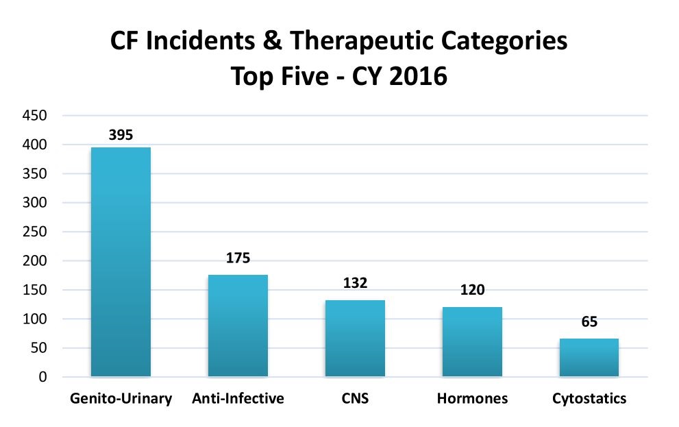 Nếu xét về loại thuốc bị phát hiện, các loại thuốc tiết niệu, chống nhiễm trùng và các thuốc trên thần kinh trung ương (CNS) bị giả mạo nhiều nhất.