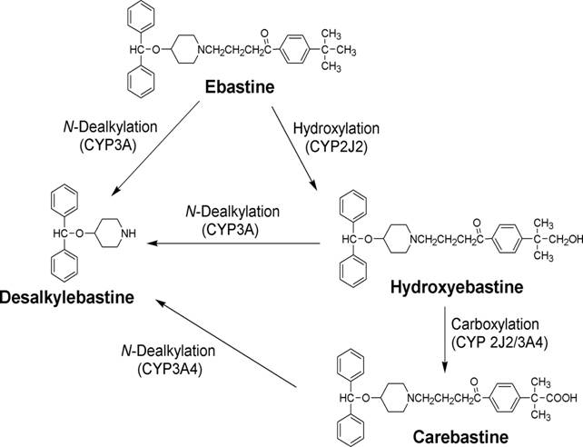 -Sử dụng ebastin đồng thời với các thuốc ketoconazole, itraconazole, erythromycin hoặc clarithromycin có thể làm tăng nồng độ của ebastine trong huyết tương và gây ra hội chứng QT kéo dài trên điện tâm đồ;
