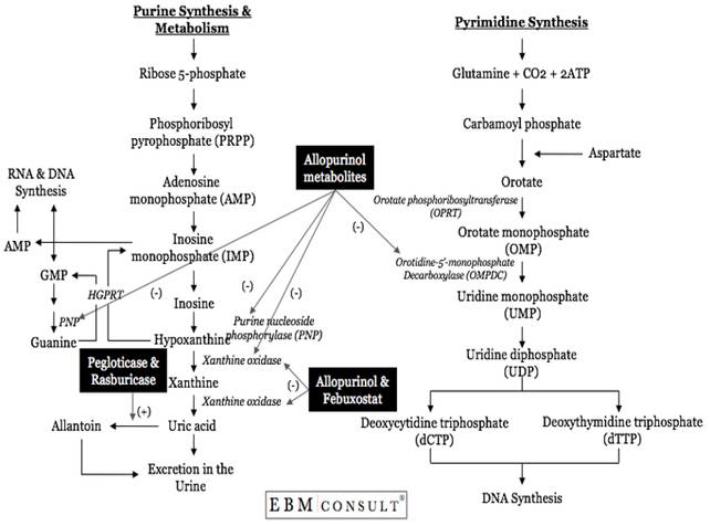 Tuy nhiên, việc sử dụng allopurinol bị hạn chế do nguy cơ gặp biến cố bất lợi đe dọa tính mạng như hội chứng Steven Johnson hoặc nhiễm độc gây hoại tử biểu bì và chiếm ưu thế rõ rệt ở khu vực Đông Nam Á. Febuxostat, một chất ức chế chọn lọc xanthine oxidase không purine là một lựa chọn tốt trong việc kiểm soát tăng acid uric máu. Điều chỉnh liều theo chức năng thận là không cần thiết ở bệnh nhân CKD với eGFR từ nhẹ đến trung bình vì nó được chuyển hóa chủ yếu bởi gan. Nó là an toàn và hiệu quả trong CKD mà không có các tác dụng phụ nghiêm trọng như allopurinol.