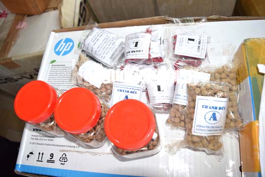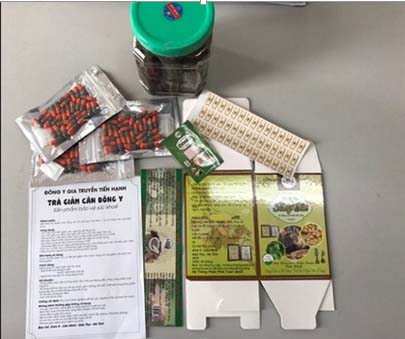 Lực lượng chức năng đã thu giữ 1 hộp dấu vuông có chữ “Nhà thuốc Đông y gia truyền Tiến Hạnh; 2 máy dập nắp miệng hộp; 59 hộp giấy in logo và chữ Đông y gia truyền Tiến Hạnh. 1.625 hộp trong có đựng sản phẩm và vỏ giấy in logo và chữ sản phẩm tăng cân "Đông y gia truyền Tiến Hạnh". 1.000 gói nilon kích thước khoảng 8x12cm bên trong có chứa các viên thuốc hình con nhộng, 1 thùng carton đựng tem nhãn, 8 bao tải chứa bột các loại, 11 can mật mía (loại 20 lít), 2.000 vỏ hộp nhựa; 4 cân loại 2 kg và loại 100 kg. 1.000 vỏ hộp giấy có in chữ giảm cân (Đông y gia truyền Tiến Hạnh), 3 nồi loại lớn và 2 gậy tre.