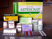 Thuốc Artesunat: được sản xuất dưới dạng viên nén natri 50mg và lọ tiêm natri 60mg. Đây là một dẫn xuất của thuốc Artemisinin dược phân lập, chiết xuất từ cây Thanh hao hoa vàng (Artemisia annua L.). Các tác dụng không mong muốn của thuốc được ghi nhận thường không nghiêm trọng, xảy ra nhẹ và thoáng qua gồm các ảnh hưởng trên hệ tiêu hóa như buồn nôn, nôn, đau bụng, tiêu chảy và trên hệ thần kinh như nhức đầu, chóng mặt, hoa mắt, đặc biệt là sau khi dùng thuốc. Những cơn sốt ngắn do thuốc cũng đã được ghi nhận trong một số trường hợp. Không dùng Artesunat cho phụ nữ có thai trong 3 tháng đầu trừ các trường hợp bị sốt rét thể ác tính.