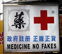 Trung Quốc là một trong những nước có nạn sản xuất thuốc giả hàng đầu thế giới. Theo báo L’Express, mỗi năm Trung Quốc có khoảng 200.000 người chết vì uống nhằm thuốc giả. Chính quyền Trung Quốc đã đóng cửa hàng ngàn cơ sở sản xuất và kinh doanh tân dược giả. Tuy nhiên, dường như các biện pháp trừng phạt vẫn không làm bọn đầu nậu kinh doanh loại thuốc giết người này e ngại. Các cơ sở sản xuất tân dược giả vẫn bùng nổ và gần như trở thành một kỹ nghệ thương mại ở nước này, đặc biệt là phát triển mạnh ở đặc khu Thâm Quyến. Đối với các loại thuốc kháng sinh, Ampicillin 500mg và Augmentin 625mg là hai sản phẩm bị làm giả nhiều nhất ở Đông Nam Á do được bác sĩ kê toa nhiều nhất. Bọn làm giả thuốc còn phù phép thuốc chữa dạ dày thành kháng sinh đặc trị viêm phổi, nước cất thành thuốc chữa bệnh thần kinh, dùng nước đường để bào chế thành xirô trị ho cho trẻ em, thay đổi nhãn mác biến thuốc châu Á thành thuốc sản xuất từ châu Âu.