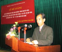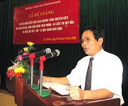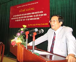 Đ/c Nguyễn Cảnh Huệ-Hiệu trưởng Trường Chính trị tỉnh Bình Định phát biểu tại Lễ bế giảng |