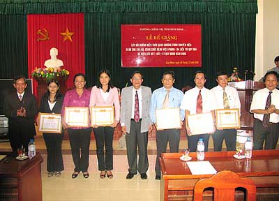 Nhằm nâng cao kiến thức quản lý nhà nước (QLNN) cho đội ngũ cán bộ đang công tác tại đơn vị, khóa bồi dưỡng kiến thức QLNN chương trình chuyên viên năm 2008 dành cho cán bộ, viên chức Bệnh viện Phong-Da liễu Trung ương Quy Hòa và Viện Sốt rét-Ký sinh trùng-Côn trùng Quy Nhơn đã thành công tốt đẹp.