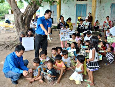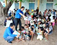 -Tặng vở, sách cho các em nhỏ đang còn ở tuổi đến trường nhưng gia đình khó khăn ở địa phương
