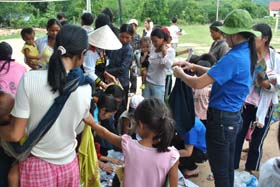 -Tặng tất cả số quần áo quyên góp của cán bộ Viện cho người dân tại địa phương.
