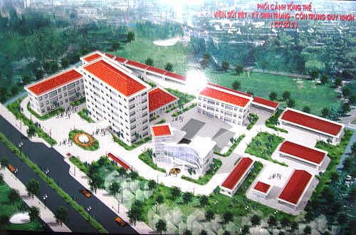 Quy mô đầu tư xây dựng: Đầu tư xây dựng tổng thể công trình là 13.180m2 với khu nhà làm việc chính 7 tầng, nhà khách chuyên gia, nhà nuôi sinh thái muỗi và bọ gậy, nhà chăn nuôi động vật và tiêm truyền,khu kho bảo quản sinh phẩm hóa chất và các hạng mục hạ tầng kỹ thuật khác. Trong đó ưu tiên đầu tư xây dựng khu nhà làm việc cao 7 tầng với tổng diện tích sàn 9.890 m2 bao gồm hội trường, các khoa/phòng, phòng hội thảo khoa học và các công trình hạ tầng kỹ thuật gồm các hạng mục như san nền, tường rào-cổng, hệ thống cấp-thoát nước, hệ thống điện, sân đường nội bộ, hệ thống phòng cháy chữa cháy, hệ thống xử lý nước thảI công suất 300m3/ngày đêm. Công trình có kết cấu khung cột bê tông cốt thép, tường xây gạch, mái bằng BTCT đổ tại chỗ, tường bao che, mua sắm trang thiết bị gắn với công trình và trang thiết bị thiết yếu phục vụ công tác chuyên môn.