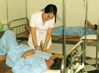 Bệnh nhân từ các tỉnh đến phòng khám chuyên khoa của Viện để được khám và điều trị bệnh sán lá gan. |