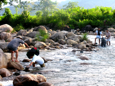 Trèo đèo, lội suối vượt ngàn chông gai để đến những vùng miền xa xôi -nơi có sốt rét lưu hành (ảnh: Thanh Tuấn) |