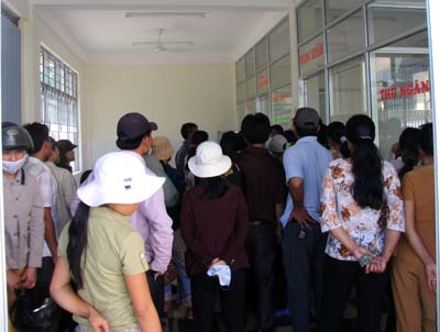bệnh nhân xếp hàng chờ lấy phiếu xét nghiệm |