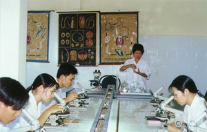 Một buổi thực hành môn ký sinh trùng của học viên trường Viện Sốt rét -KST-CT Quy Nhơn |