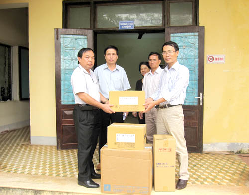 TS Nguyễn Văn Chương cùng Đoàn công tác của Viện làm việc và trao thuốc hỗ trợ cho TTPCSR tỉnh Quảng Bình |