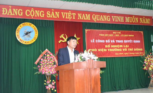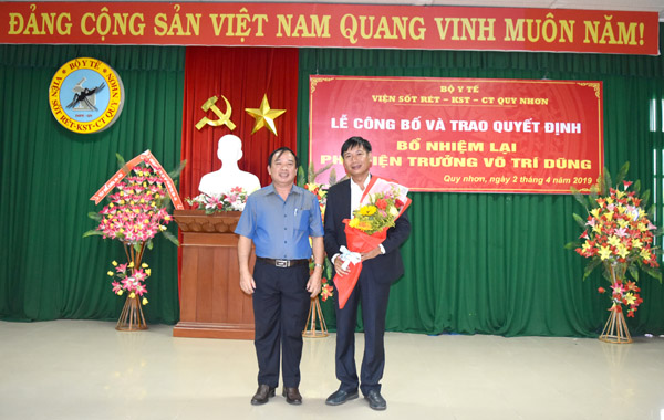 Ngày 02/4/2019, Viện Sốt rét-KST-CT Quy Nhơn đã long trọng tổ chức Lễ công bố và trao Quyết định của Bộ trưởng Bộ Y tế bổ nhiệm lại chức vụ Phó Viện trưởng phụ trách kinh tế cho ThS. Võ Trí Dũng.