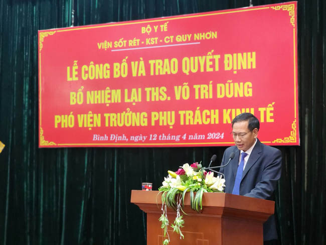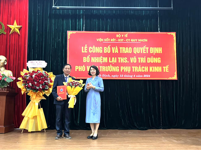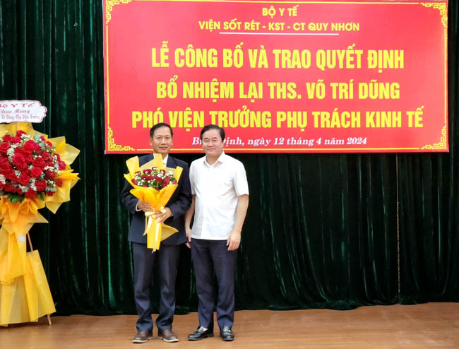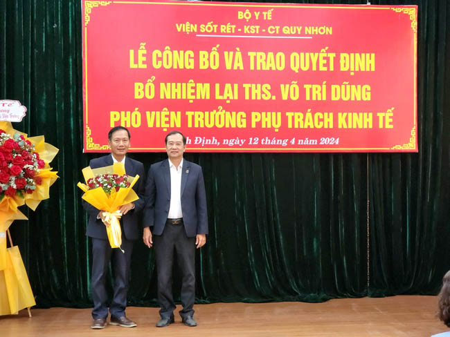 Ngày 12/4/2024, Viện Sốt rét-KST-CT Quy Nhơn long trọng tổ chức Lễ công bố Quyết định của Bộ trưởng Bộ Y tế bổ nhiệm lại chức vụ Phó Viện trưởng phụ trách kinh tế cho ThS. Võ Trí Dũng.