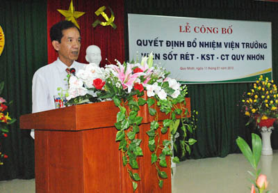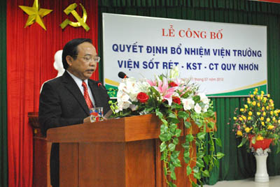 Lễ công bố Quyết định bổ nhiệm được tổ chức tại Viện Sốt rét-Ký sinh trùng-Côn trùng uy Nhơn với sự có mặt của PGS.TS Nguyễn Thanh Long-Thứ trưởng Bộ Y tế cùng Lãnh đạo Vụ Tổ chức cán bộ Bộ Y tế đã, đồng chí Mai Thành Thắng-ủy viên thường vụ-Phó chủ tịch UBND tỉnh Bình Định, đồng chí Đặng Hoài Tân-Phó Bí thư Đảng uỷ Khối Dân chính đảng tỉnh Bình Định; lãnh đạo Bệnh viện Phong Da liễu Trung ương Quy Hoà, Viện Quân Y 13- Quân khu 5, Trung tâm Chỉnh hình, Sở Y tế Bình Định, Công ty Dược-Trang thiết bị Bình Định, Sở Công an tỉnh, UBND Tp. Quy Nhơn, Công an thành phố Quy Nhơn, Trung tâm phòng chốngsốt rét-Bướu cổ, Trung tâm Y học dự phòng tỉnh Bình Định; Ban lãnh đạo Viện, Ban Chấp hành Đảng uỷ và toàn thể cán bộ công nhân viên chức của Viện Sốt rét-Ký sinh trùng-Côn trùng Quy Nhơn.