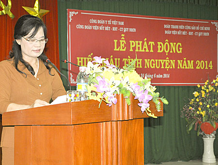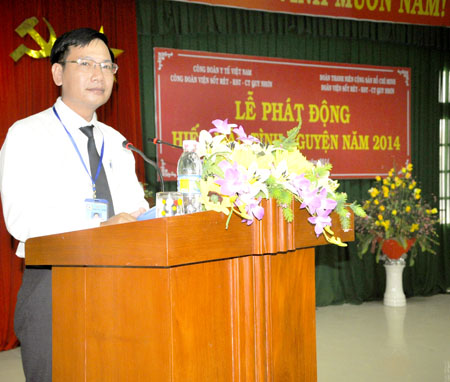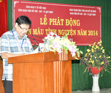 ThS. Hồ Đắc Thoàn-Chủ tịch Công đoàn phát động phong trào hiến máu nhân đạo tại buổi Lễ |