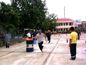 - Thi chạy 100m mang lăng vòi vượt chướng ngại vật.