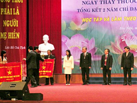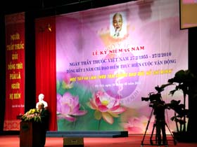 Tại Trung tâm hội nghị quốc gia, Bộ Y tế long trọng tổ chức “Học tập và làm theo tấm gương đạo đức Hồ Chí Minh”. Đến dự buổi lễ có Thủ tướng Chính phủ Nguyễn Tấn Dũng đại diện cho Đảng, Nhà nước, Chính phủ đến dự và phát biểu chúc mừng ngành Y tế kỷ niệm 55 năm xây dựng và phát triển. Về phía Bộ Y tế có TS. Nguyễn Quốc Triệu-Uỷ viên Trung ương Đảng-Bộ trưởng Bộ Y tế cùng các đồng chí Lãnh đạo Bộ Y tế, lãnh đạo các Cục, Vụ Viện, các Bệnh viện, các đơn vị Quân Y trong cả nước và cán bộ lãnh đạo Bộ Y tế qua các thời kỳ.