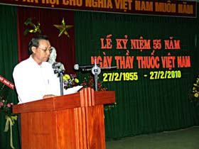 Phát biểu với buổi lễ kỷ niệm 55 năm Ngày Thầy thuốc Việt Nam 27/2, Thủ tuớng Chính phủ đánh giá cao sự đóng góp của ngành Y tế trong sự nghiệp xây dựng và bảo vệ đất nước, đặc biệt là trong sự nghiệp chăm sóc và bảo vệ sức khoẻ nhân dân. Thủ tướng cũng chỉ đạo ngànhY tế Việt Nam cần nêu cao tinh thần trách nhiệm, đạo đức nghề nghiệp theo lời Bác dạy; “ Thầy thuốc nhưmẹ hiền -Lương Y phải như từ mẫu”. Thủ tướng đã chỉ đạo 8 vấn đề mà ngành Y tế cần cố gắng phấn đấu thực hiện, trong đó ưu tiên xây dựng đội ngũ y tế cơ sở; chú trọng vấn đề y tế dự phòng và nâng cao chất lượng khám chữa bệnh ở các tuyến, xã hội hoá công tác y tếnhằm đưa các dịch vụ y tế phục vụ tốt nhất đến người dân.