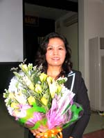 TS. Triệu Nguyên Trung - Viện trưởng Viện Sốt rét -KST-CT Quy Nhơn tặng hoa chúc mừng tân Tiến sĩ Ngô Thị Hương |