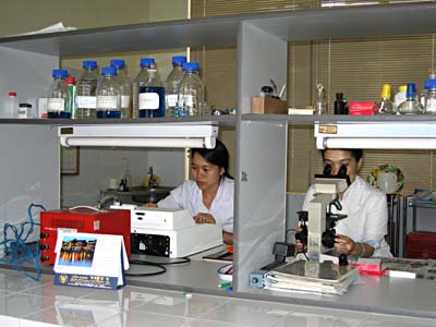 Tại labo Sinh hóa miễm dịch của Viện số rét-KST-CT Quy Nhơn |