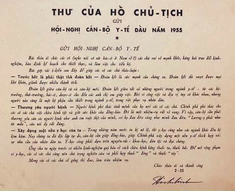 Ngày 27/2/1955, nhân dịp tổ chức hội nghị cán bộ y tế, Bác Hồ đã gửi thư cho Hội nghị căn dặn ba điều về sự đoàn kết, thương yêu người bệnh và dốc lòng xây dựng nền y học Việt Nam. Đến năm 1985, Đảng và Nhà nước ta quyết định lấy ngày 27/2 hàng năm là Ngày Thầy thuốc Việt Nam nhằm tôn vinh những người làm trong ngành Y tế, trách nhiệm cũng như tài trí của những người cán bộ y tế trong sự nghiệp xây dựng và bảo vệ Tổ quốc, đồng thời cũng là ngày để nhắc nhở về trách nhiệm và sứ mệnh mà xã hội đã giao phó đối cho các y, bác sĩ và những người làm công tác y tế.